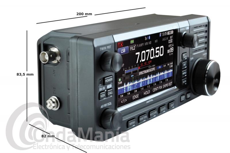 Transceptor Icom IC-705 de HF, 50, 144 y 430 MHz multimodo con banda lateral USB y LSB, AM, FM, CW, RTTI en analógico y modo D-STAR (DV) en modo digital, tiene una potencia de 5 W con su batería BP-272 y 10 W con alimentación 13,8 VCC, dispone de una gran pantalla táctil LCD a color con 4,3 pulgadas, dispone de puerto USB, tarjeta SD, bluetooth, LAN inalámbrica y GPS,.....