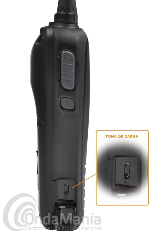 Cargador USB (USB tipo Micro-B): Para cargar el IC-M25EURO se utiliza un conector USB estándar (tipo Micro-B); se pueden usar cables con toma de encendedor o baterías de móviles que carguen smartphones u otros dispositivos*. * El IC-M25EURO acepta 5V/1A (Max.) de entrada. No se garantiza el uso de productos de otros fabricantes.