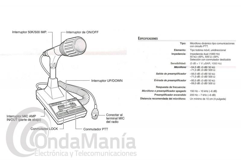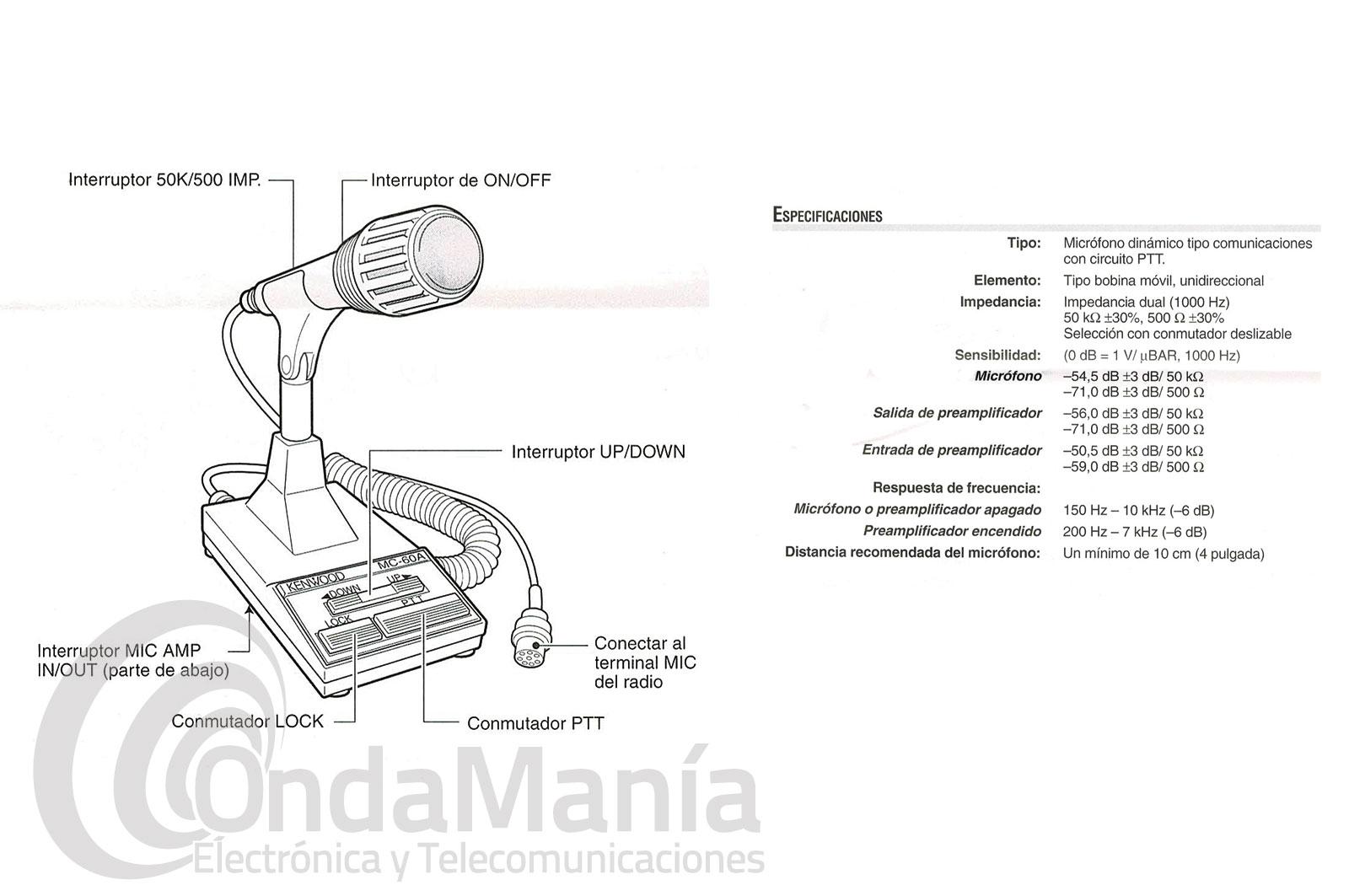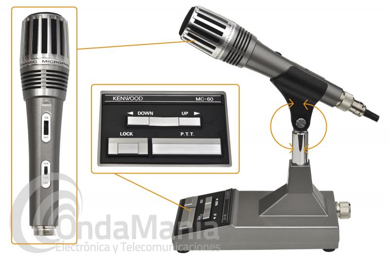 MC-60 Micrófono Kenwood de sobremesa con 8 pins con up/down para equipos móviles y de HF. En algunos modelos necesita el adaptador MJ-88.