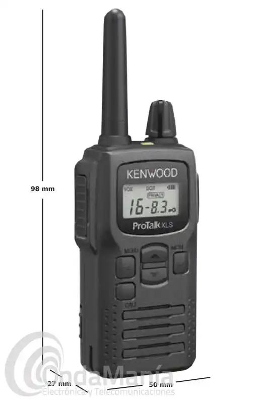 Con unas medidas de solo 50 x 90 x 27 mm (ancho x alto x fondo), este walkie talkie cabe cómodamente en la palma de la mano o en un bolsillo y solo pesa 140 gramos.