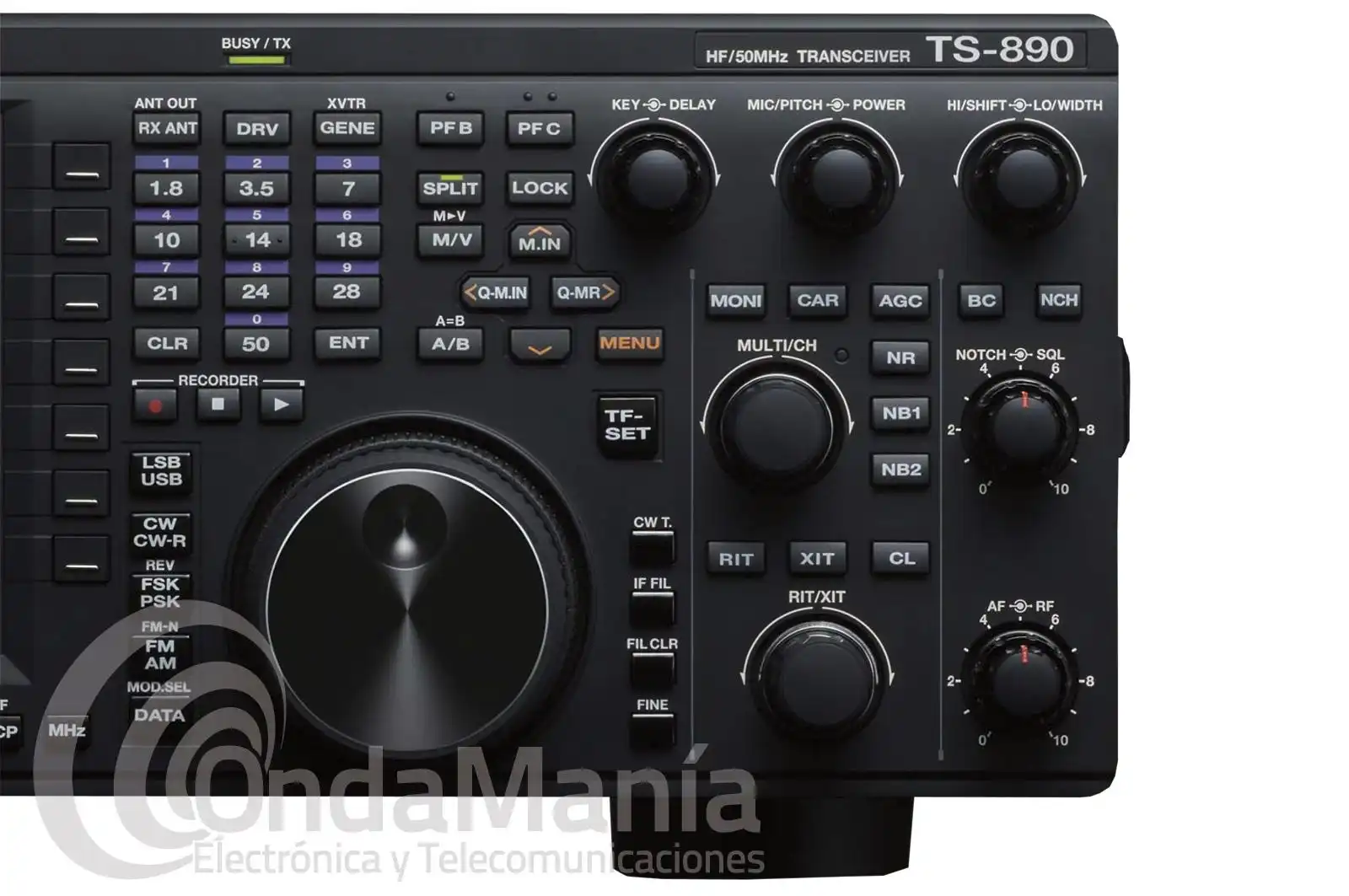 | Rango Frecuencia Recepción | 0.13 ~ 30 MHz, 50 ~ 54 MHz, 70.0 ~ 70.5 MHz VFO: continuous 30 kHz ~ 74.8 MHz |