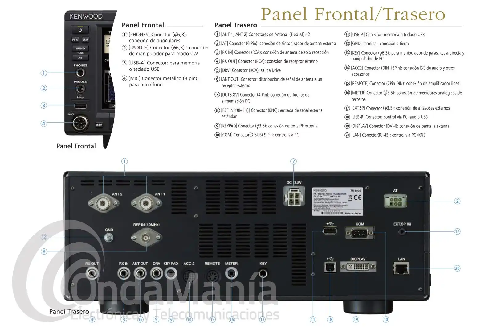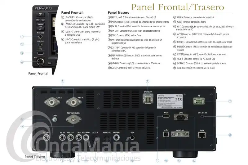 | Rango de frecuencia del transmisor | - 160 m band: 1.81 ~ 2.0 MHz - 80 m band: 3.5 ~ 3.8 MHz - 60 m band: 5.25 ~ 5.45 MHz (> refer to applicable Amateur Radio regulations of your country) - 40 m band: 7.0 ~ 7.2 MHz - 30 m band: 10.1 ~ 10.15 MHz - 20 m band: 14.0 ~ 14.35 MHz - 17 m band: 18.068 ~ 18.168 MHz - 15 m band: 21.0 ~ 21.45 MHz - 12 m band: 24.89 ~ 24.99 MHz - 10 m band: 28.0 ~ 29.7 MHz - 6 m band: 50.0 ~ 52.0 MHz - 4 m band: 70.0 ~ 70.5 MHz |