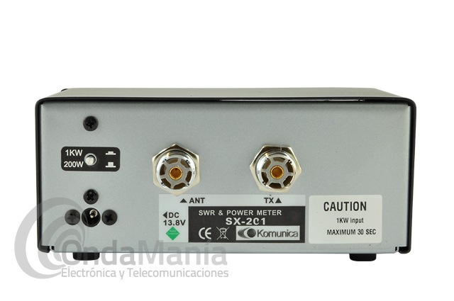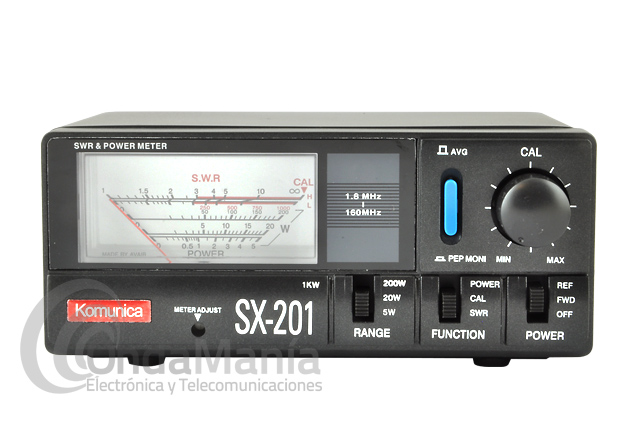 Medidor de ROE y Watimetro Komunica Power SX-201 con un rango de frecuencias desde 1.8 Mhz. hasta 160 Mhz., con una potencia máxima de 1KW. Los conectores traseros son “PL”.