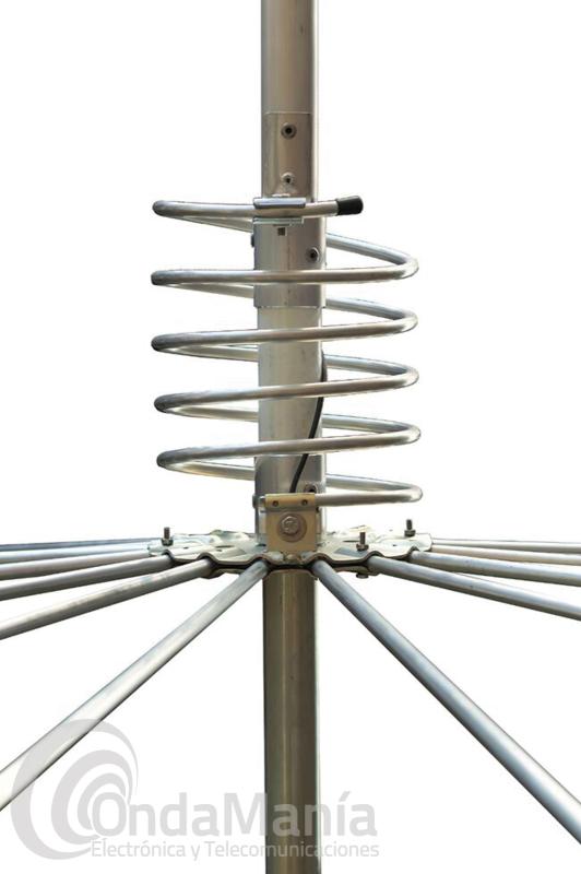 Antena de aluminio, de base para banda ciudadana CB-27 vertical de 5/8 con 16 radiales, 8 metros de longitud, 9 dB de ganancia, 3000 W de potencia,...