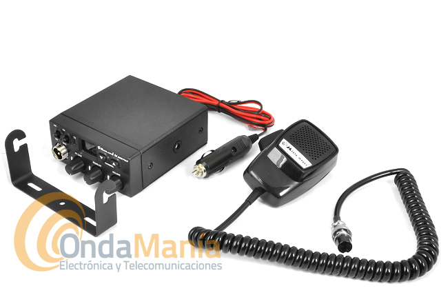 El pack incluye: emisora Midland M-Zero, micrófono, soporte de emisora y de micrófono y manual de instrucciones para la emisora.