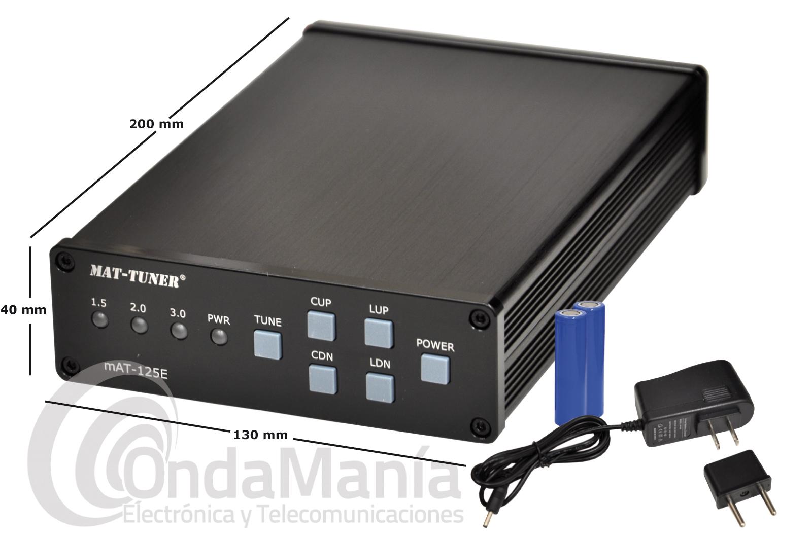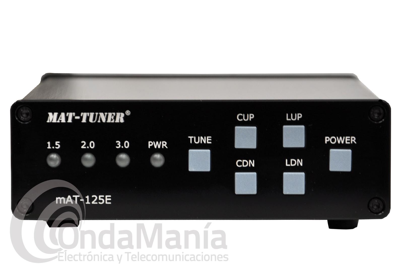 El Mat-Tuner MAT-125E es un sintonizador automático de antena versátil, que se puede utilizar en casi todos los tipos de transmisores. Proporciona una sintonización automática de antena en todo el espectro HF más 6 metros, con niveles máximos de potencia de hasta 120 vatios. Sintoniza dipolos, verticales, Yagis o prácticamente cualquier antena alimentada por cable coaxial. El mAT-125E es compatible con una asombrosa gama de antenas e impedancias, mucho mayor que algunos otros acopladores automáticos que pueda haber considerado, incluidos los acopladores de antena incorporados en muchos equipos.
