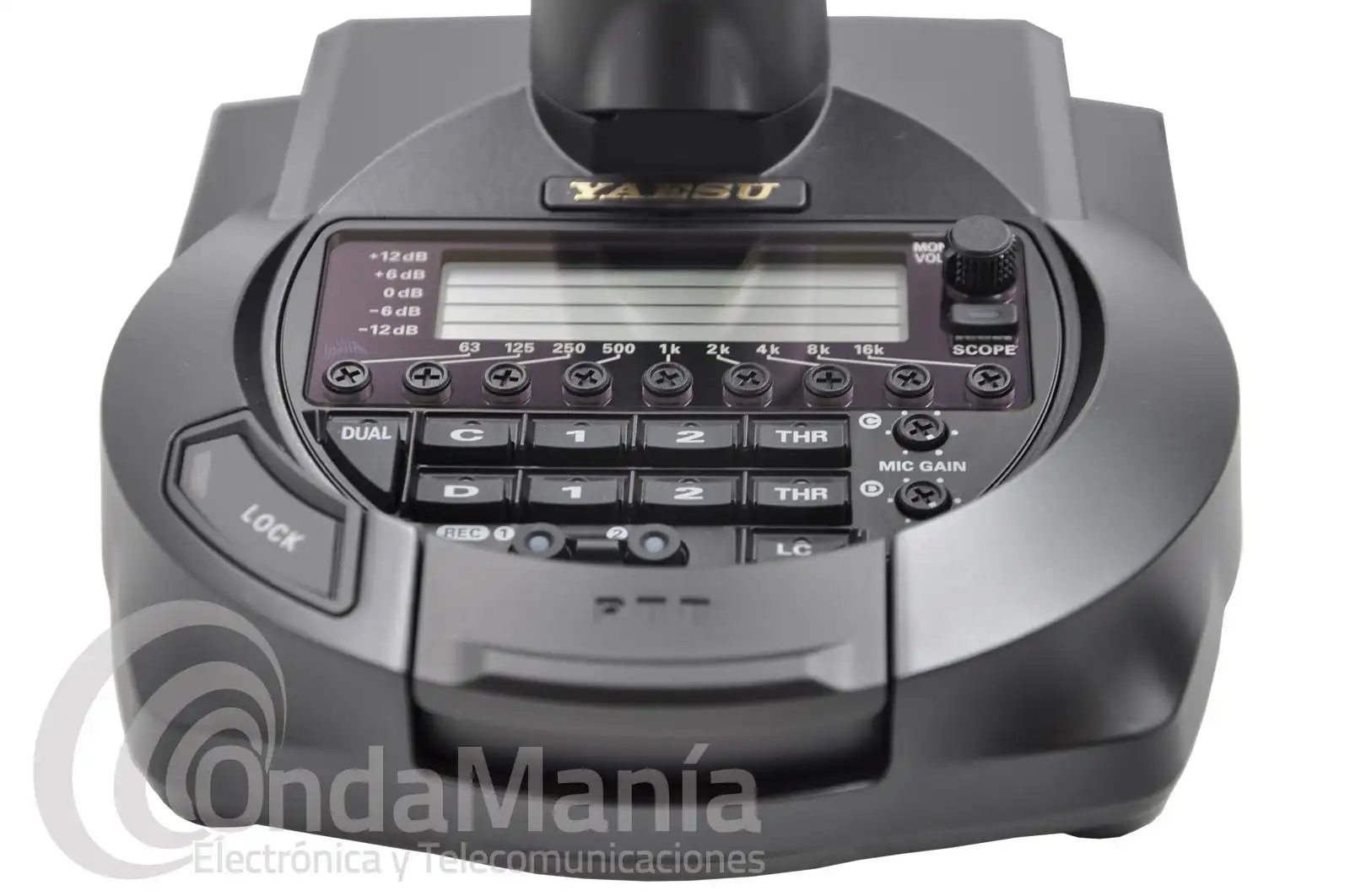 El elemento de micrófono de condensador produce una mayor respuesta de frecuencia y características de audio claras y nítidas, perfectas para ser escuchadas en bandas de multitudes y en grandes apilamientos DX, mientras que el elemento de micrófono dinámico ofrece las ricas tonalidades bajas-medias, favorecidas por los QSOs locales.