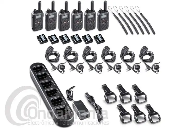 El Midland BR180X6 es un pack de 6 walkie talkies PMR446 de uso libre, con un cargador múltiple de 6 unidades y 6 pinganillos, perfecto para satisfacer las necesidades del sector minorista, como tiendasde ropa, calzado, restaurantes, grandes almacenes, etc... En entornos donde la eficiencia y la practicidad son esenciales para optimizar el proceso de venta y reducir costos.