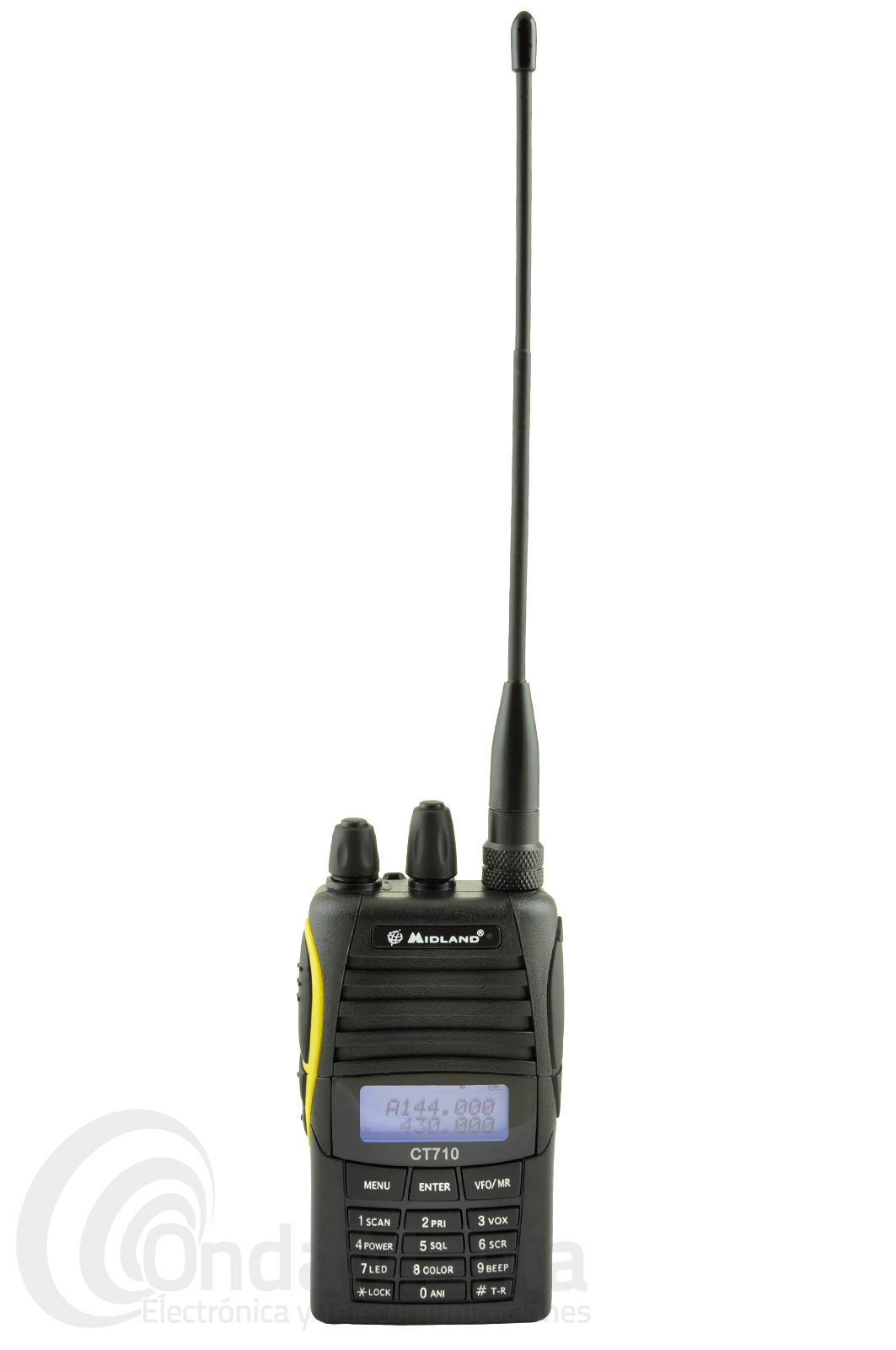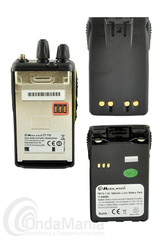 El Midland CT-710 es un transceptor doble banda de UHF y VHF con radio comercia de FM y con 5W de potencia, 128 canales de memoria, secrafonía, tonos CTCSS y DCS, doble frecuencia en el display, batería de litio de alta capacidad, cargador rápido de sobremesa,...