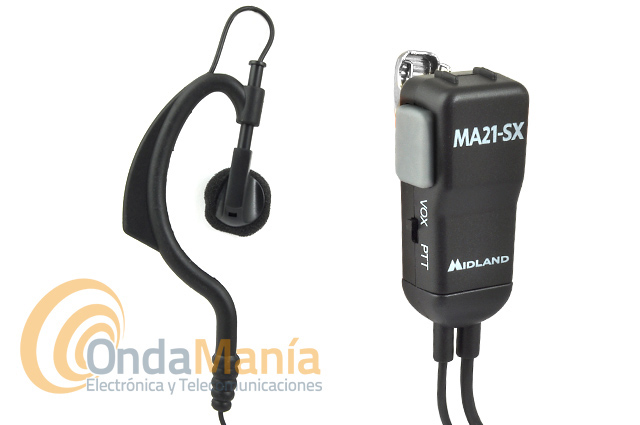 Midland MA-21SX micrófono auricular con cable rizado ideal para el Midland 777. El micrófono auricular tiene un conmutador para poder utilizar el Midland 777 con VOX o PTT. Una característica muy especial es su conector acodado para que nos sea mas cómodo a la hora de ser utilizado.