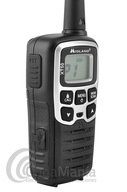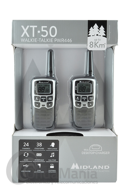 WALKI TALKIES MIDLAND XT50 PAREJA PMR-446 DE USO LIBRE+OPCION PINGANILLOS