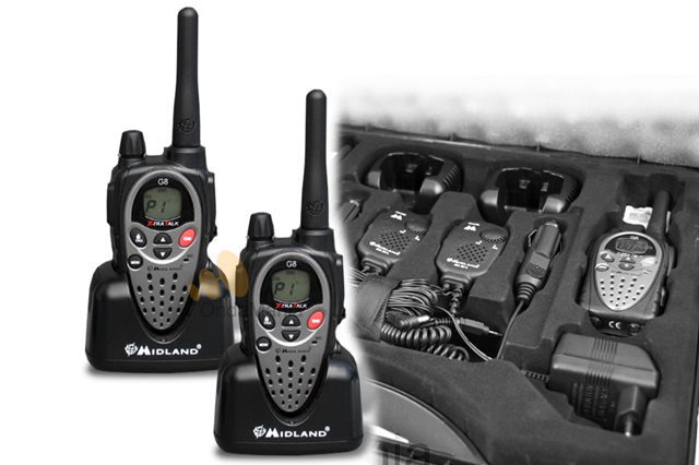 Midland G8 Work and Hobby Edition; maleta compuesta por dos Midland G8 con cargadores de base para casa, cargadores para el coche a 12 VCC, baterias recargables, micro-altavoces, pinzas de cinturón,.....