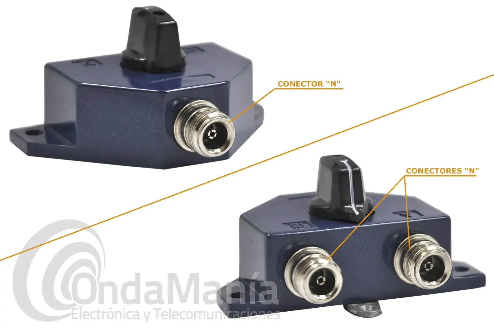 Este conmutador coaxial de 2 vías con conectores tipo N, es ideal para su uso en sistemas de antenas. Proporciona un método muy positivo de conmutación entre dos sistemas de antena y ofrece una pérdida muy baja.
