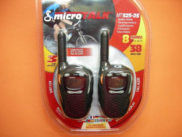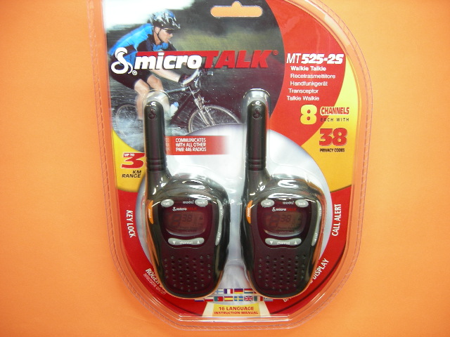 La pareja de PMR Cobra MT-525 dispone de 8 canales de frecuencias, 38 subtonos CTCSS. Potencia 500 mW. La batería y el cargador son accesorios opcionales.