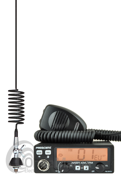 El pack contiene: emisora President Randy, micrófono con Up/Down, soporte micrófono, soporte emisora, antena WA-27, cable de antena, base de antena y manual de instrucciones en castellano.