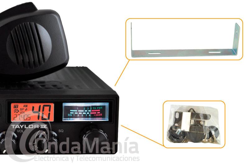 El pack incluye: Emisora President Taylor IV, micrófono President Digimike con subida y bajada de canales, soporte para emisora y para micrófono, manual de instrucciones en Español, tornillería.