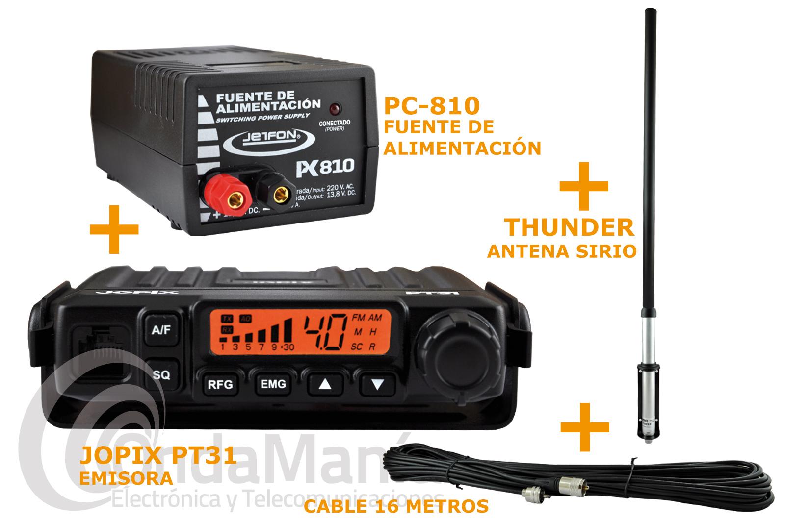 de banda ciudadana Jopix PT-31, antena Sirio Thunder, fuente de alimentación