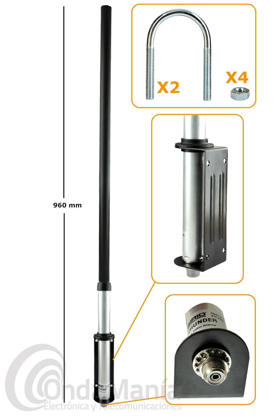 Mhz, es una antena de 1/4 construida en fibra y con una longitud de 960 mm y un