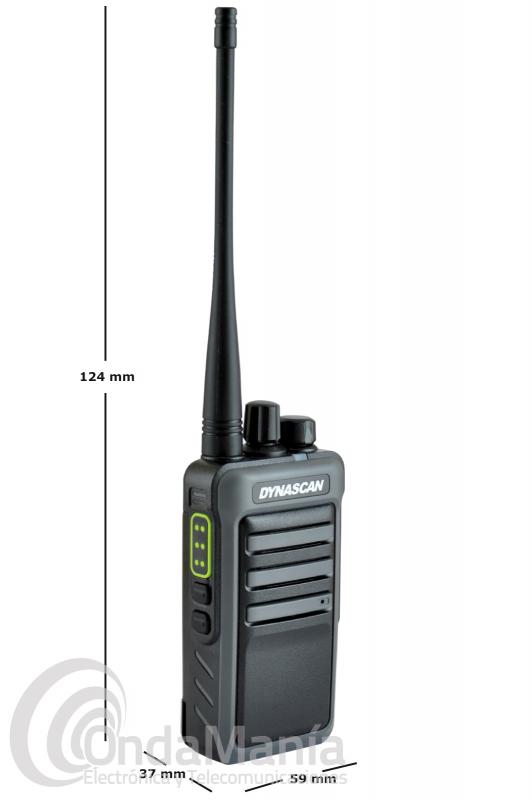 El Dynascan RL-300 es un walki talki de UHF ideal para la caza por su ergonómico diseño y sus grandes prestaciones, dispone de 256 canales, posee un display led oculto en el frontal, debajo del altavoz, tiene un rango de frecuencia de 400 a 47 MHZ, 4 W de potencia, nivel de protección IP55, incluye CTCSS y DCS, batería de Ion-Litio, scrambler o secrafonia, VOX,...