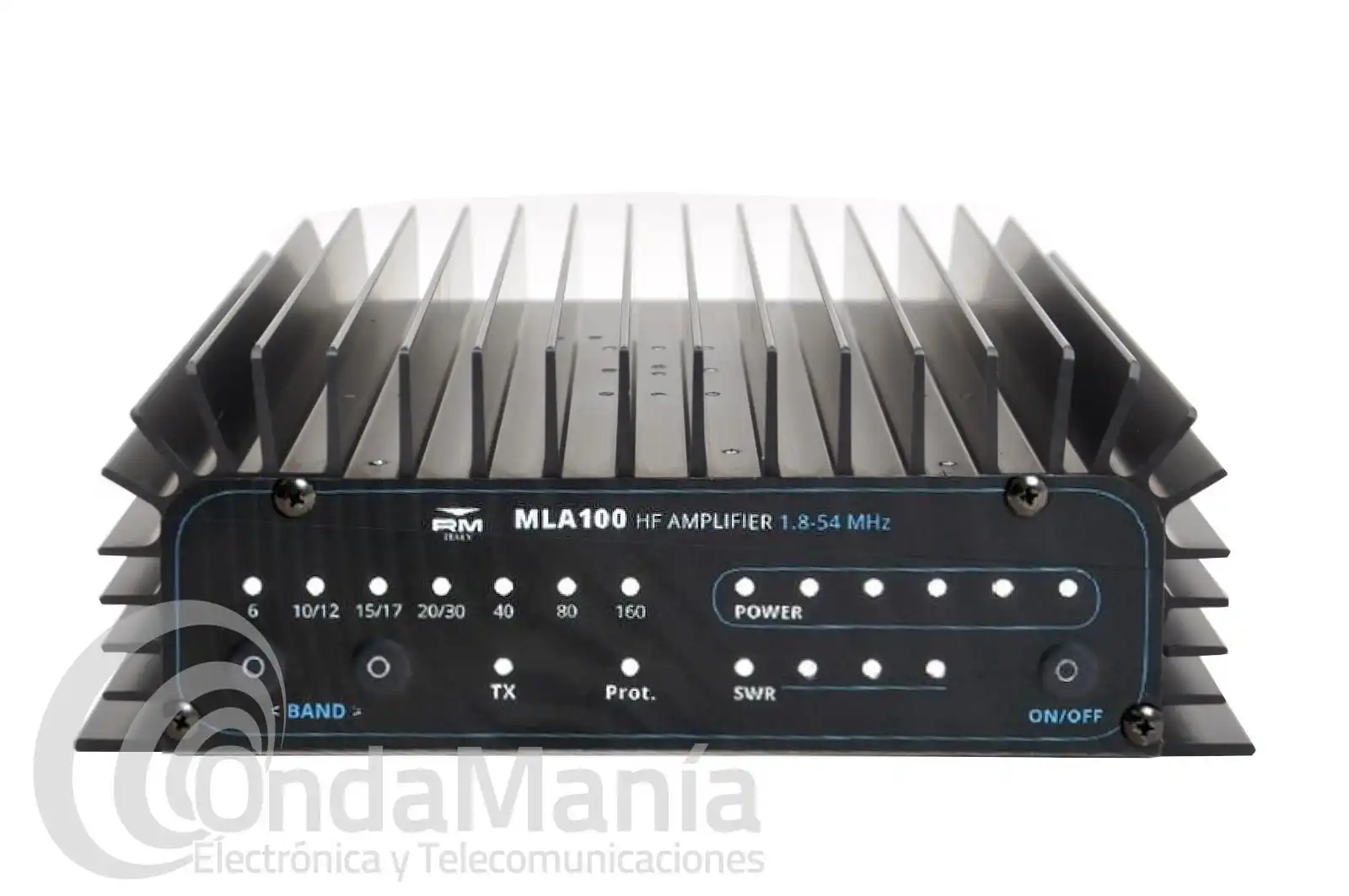 También cuenta con conmutación RX / TX por diodo PIN para uso incluso en QSK. El MLA100 está protegido contra VSWR excesiva de antena, y contra una sobreexcitación de potencia de entrada excesiva y tiene un apagado térmico si se sobrecalienta.