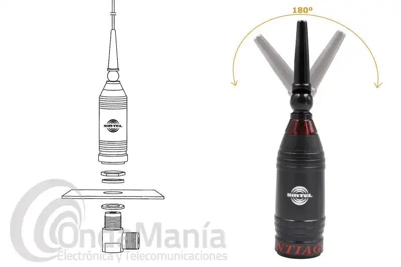 Antena Sirtel Santiago 1200, 5/8, 5 dB de ganancia e incluye base PL, cable 4,5 mts de cable RG-58 y un conector PL.