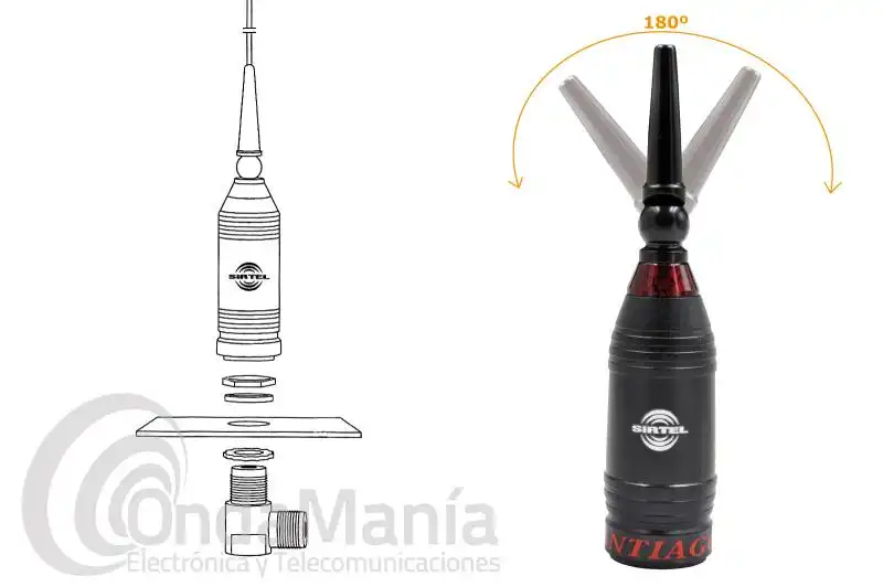 Antena original Sirtel Santiago 600, 5/8, 4 dB de ganancia e incluye base PL, cable 4,5 mts de cable RG-58 y un conector PL.