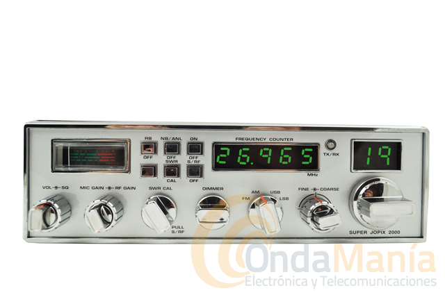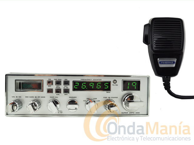 Transceptor de Banda Ciudadana 27 Mhz. con AM/FM/USB y LSB, incorpora frecuencimetro y LCD para ver el canal, también incluye medidor de estacionarias y múltiples funciones.