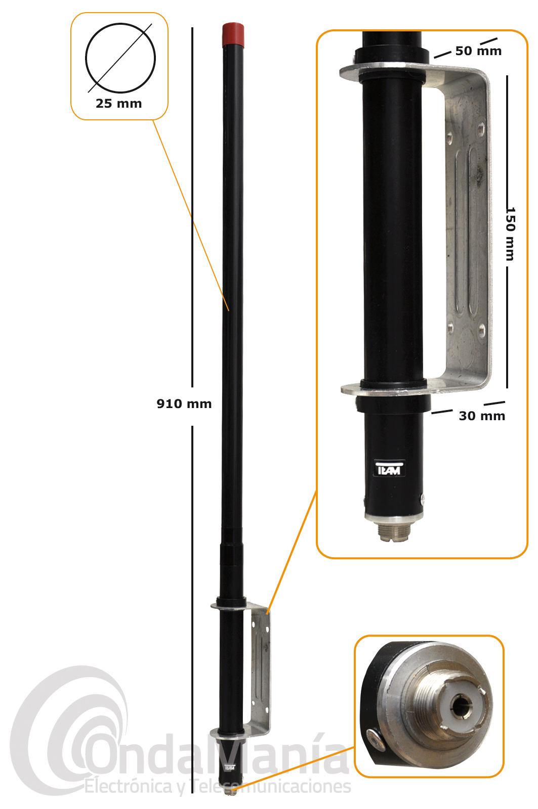 Antena de base, balcón,... de banda ciudadana Team Super Lance con 910 mm de longitud, de 26 a 28 Mhz, 4,5 dB, 5/8, 4,5 dB de ganancia,...