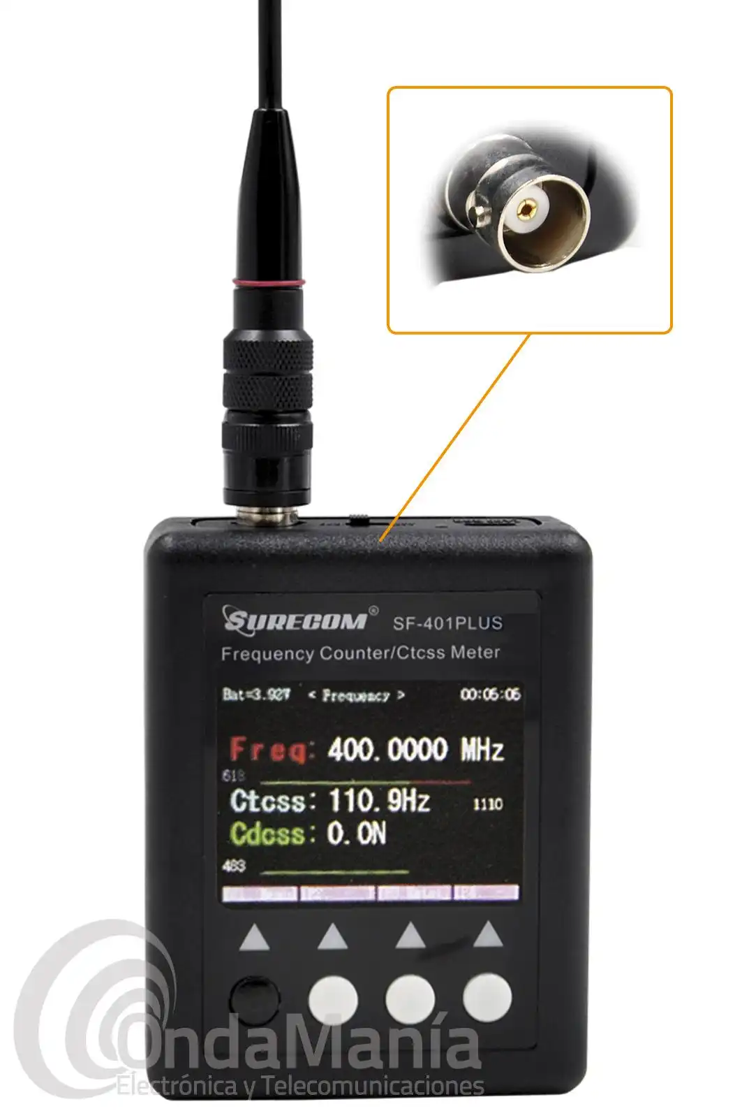 Frecuencímetro portátil digital Surecom SF-401 Plus con un