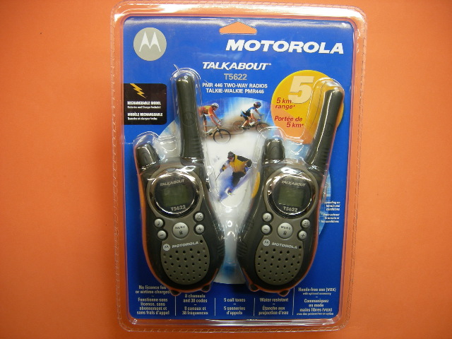 Pareja de PMR de uso libre con 8 canales y 38 subtonos CTCSS con una potencia de 0,5 W., función de Vox (con accesorio opcional) y vibrador. Incluyen cargador doble y baterías recargables.
