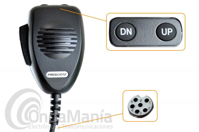 El pack incluye: 1 emisora President Teddy II + ASC, micrófono con subida /bajada de canales, soporte de micrófono, soporte para le emisora, tornillería varia y manual de instrucciones.