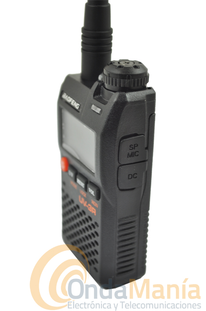 Contenido del embalaje: 1 walkie doble banda, 1 antena doble banda, 1 batería de ion-litio, 1 alimentador para el cargador AC/DC, 1 base de carga, 1 pinganillo, 1 clip de cinturón y 1 manual de instrucciones en castellano.