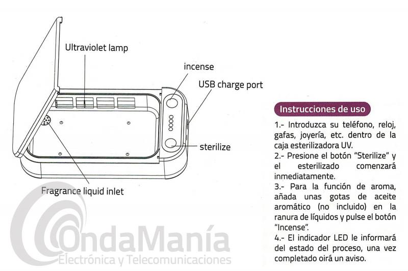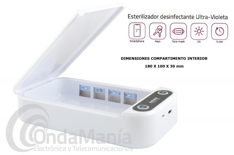 El esterilizador desinfectante UV-C elimina las bacterias depositadas en la superficie de su teléfono, llaves, gafas, mascarillas,.....
