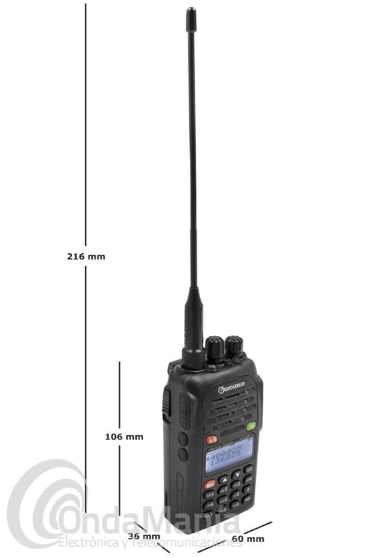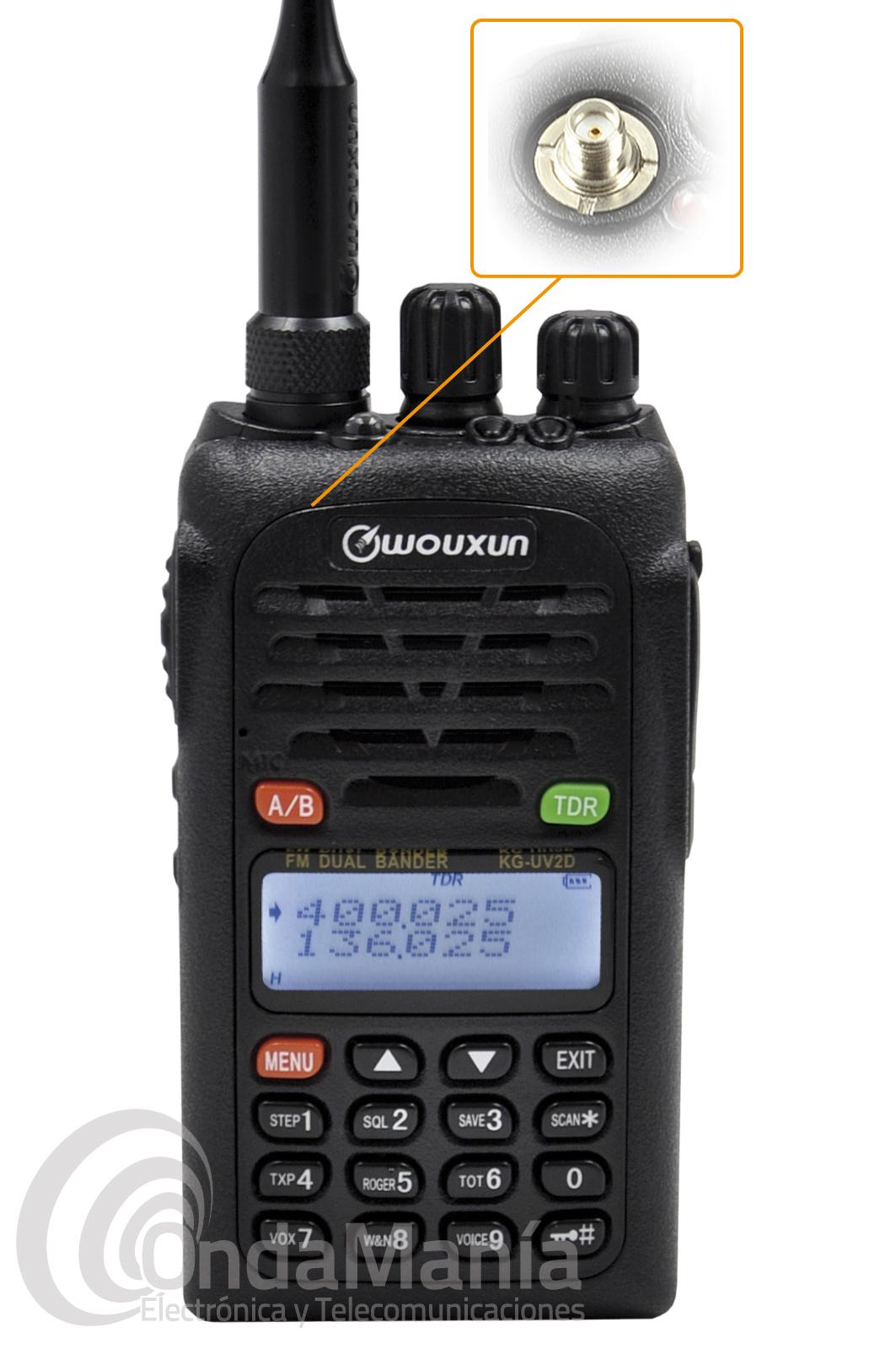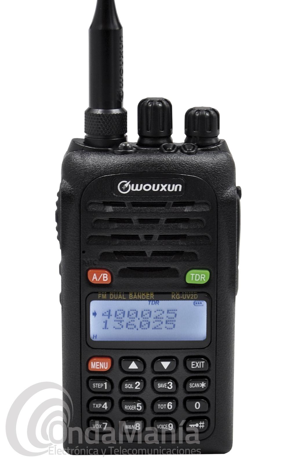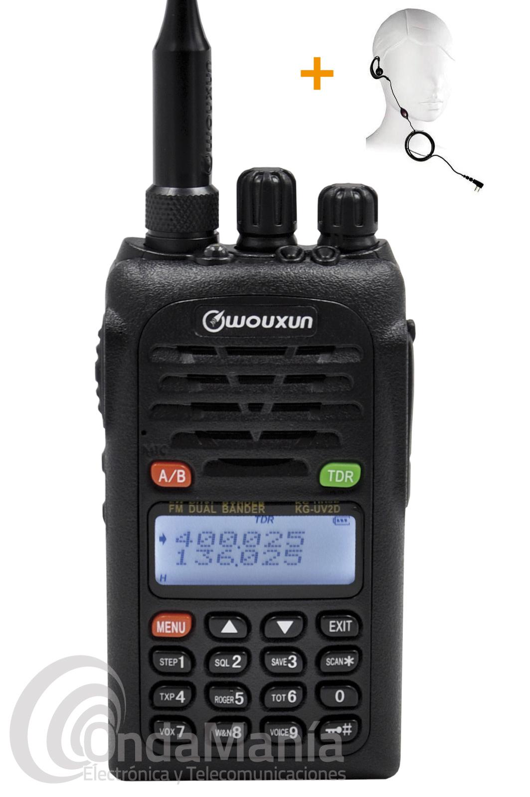 WOUXUN KG-UV 2D Dual Band IP-55 con batería de litio y pinganillo. Nueva versión actualizada del modelo de más éxito de WouxunWalkie Talkie Wouxun KG-UV2D doble banda VHF/UHF compacto, con un grado de protección IP-55 certificado, dispone de 128 Memorias, sensibilidad y selectividad fuera de lo común! Esta última versión de UVD2 cuenta, además, con radio de FM de 88-108, incluye linterna y cronómetro. Suministrado con conector de antena SMA macho estándar, tiene la posibilidad, a través de un software especial (opcional), de poder personalizar el mensaje de bienvenida en el encendido: puede escribir hasta 6 caracteres para personalizar el walkie talkie con su nombre. La nueva versión mantiene la ambientación estética tradicional WOUXUN.
