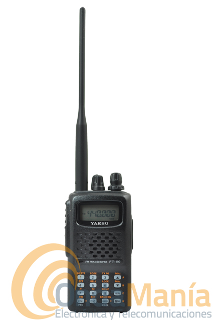 El Yaesu FT-60 es un equipo portátil con una potencia de 5W y con batería de Ni-Mh 1.400mAh posee una recepción entre 108/520 y 700/999 Mhz. (en banda de aviación AM), con 1.000 memorias divididas en 10 bancos. Incluye CTCSS y botón de acceso al sistema Wires.